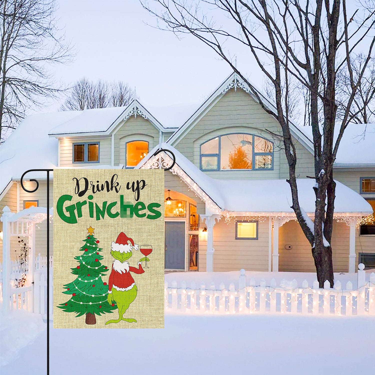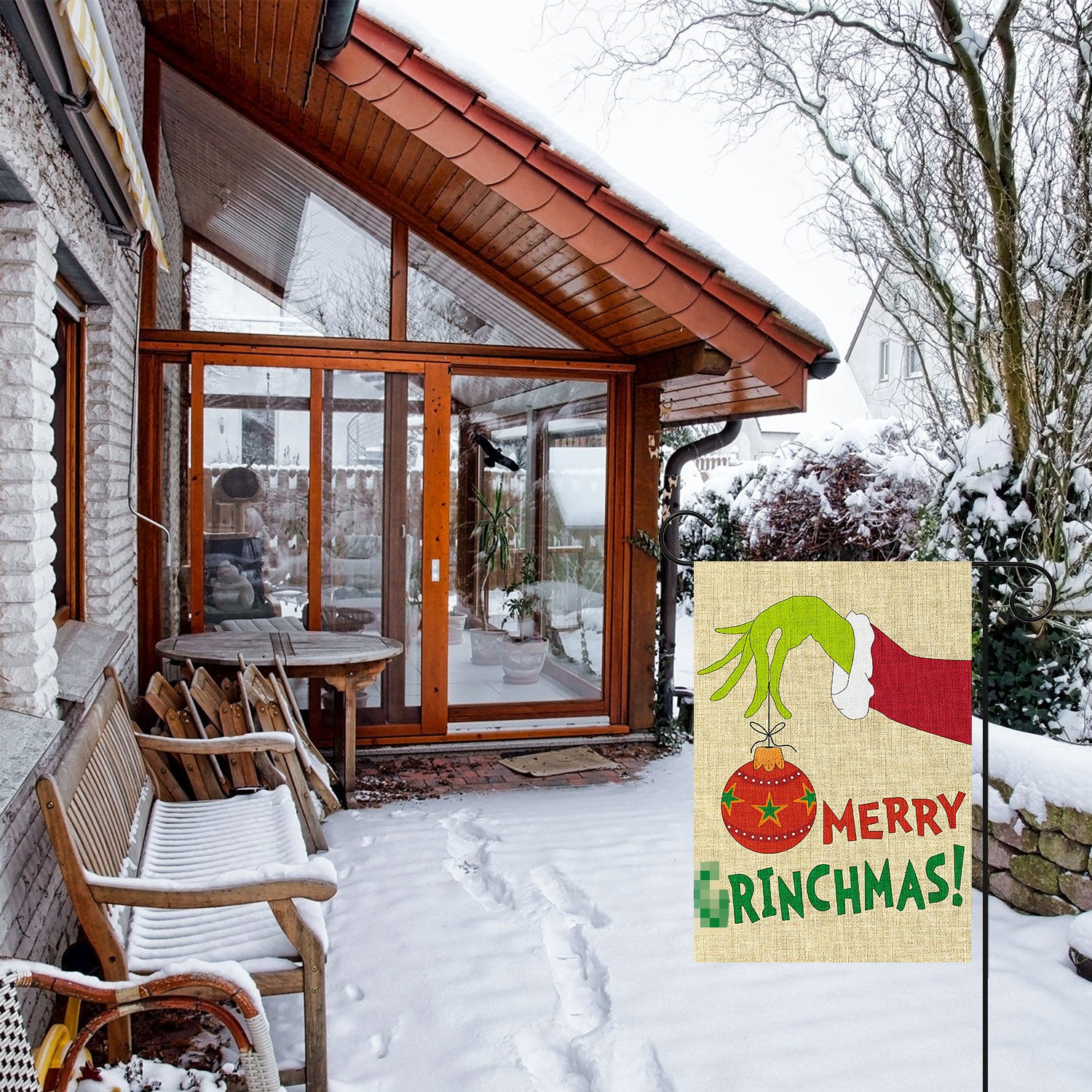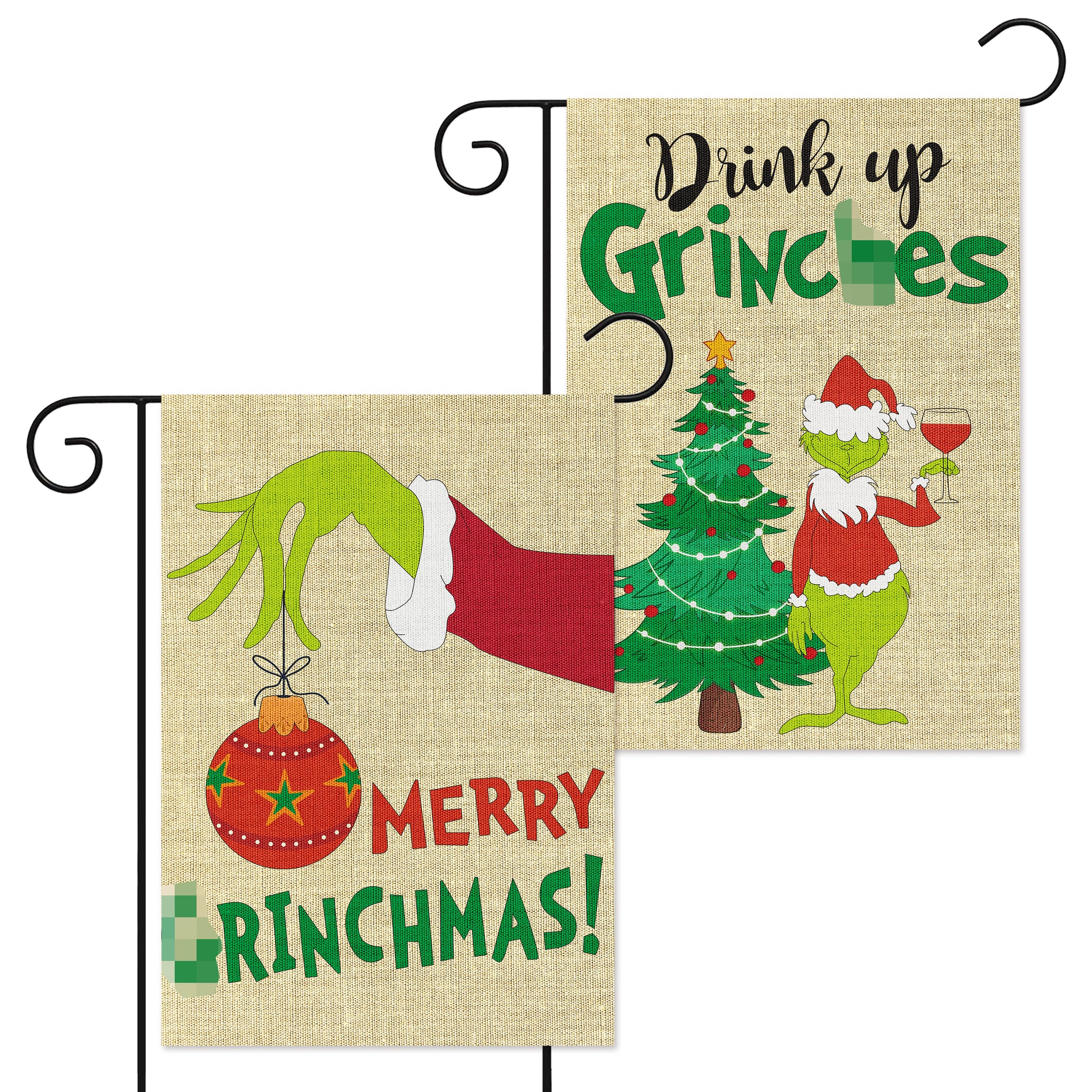 Merry Christmas Garden Flag: This set includes 2 pieces of garden flags (not including poles). These garden flags are printed with different green moster and xmas tree patterns.