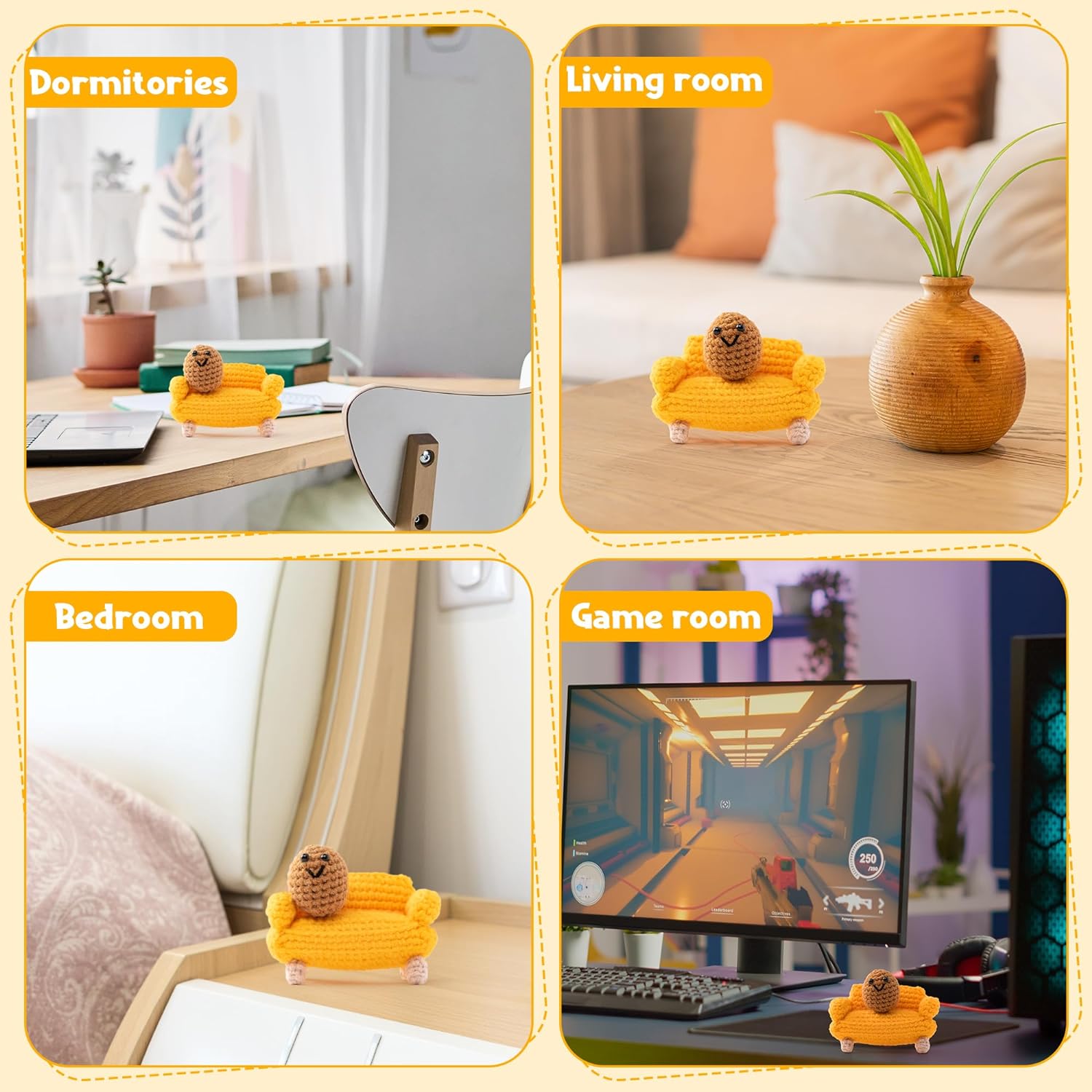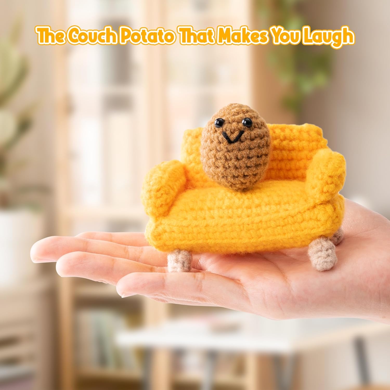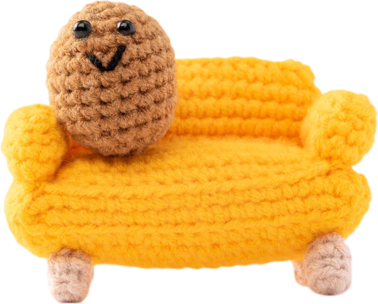 - Package: You will get a yellow crocheted couch and a crocheted potato. You can place the potato on the couch and it will look very interesting and funny.