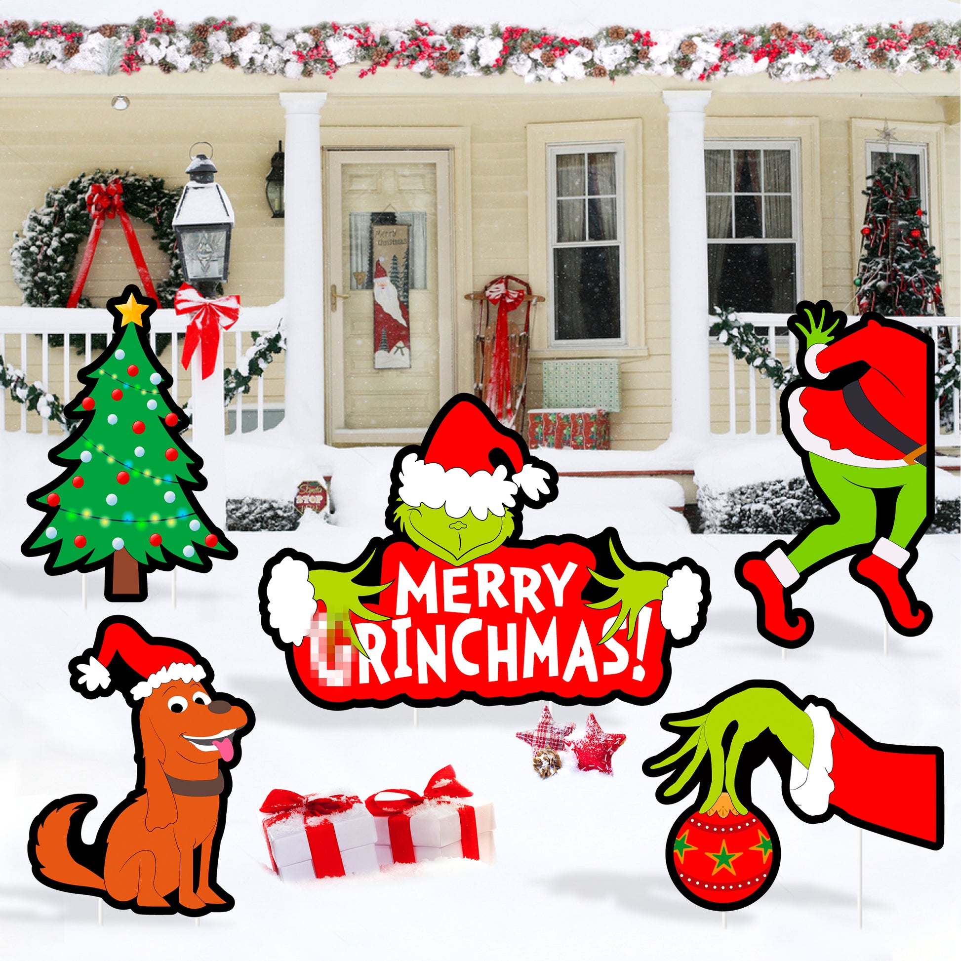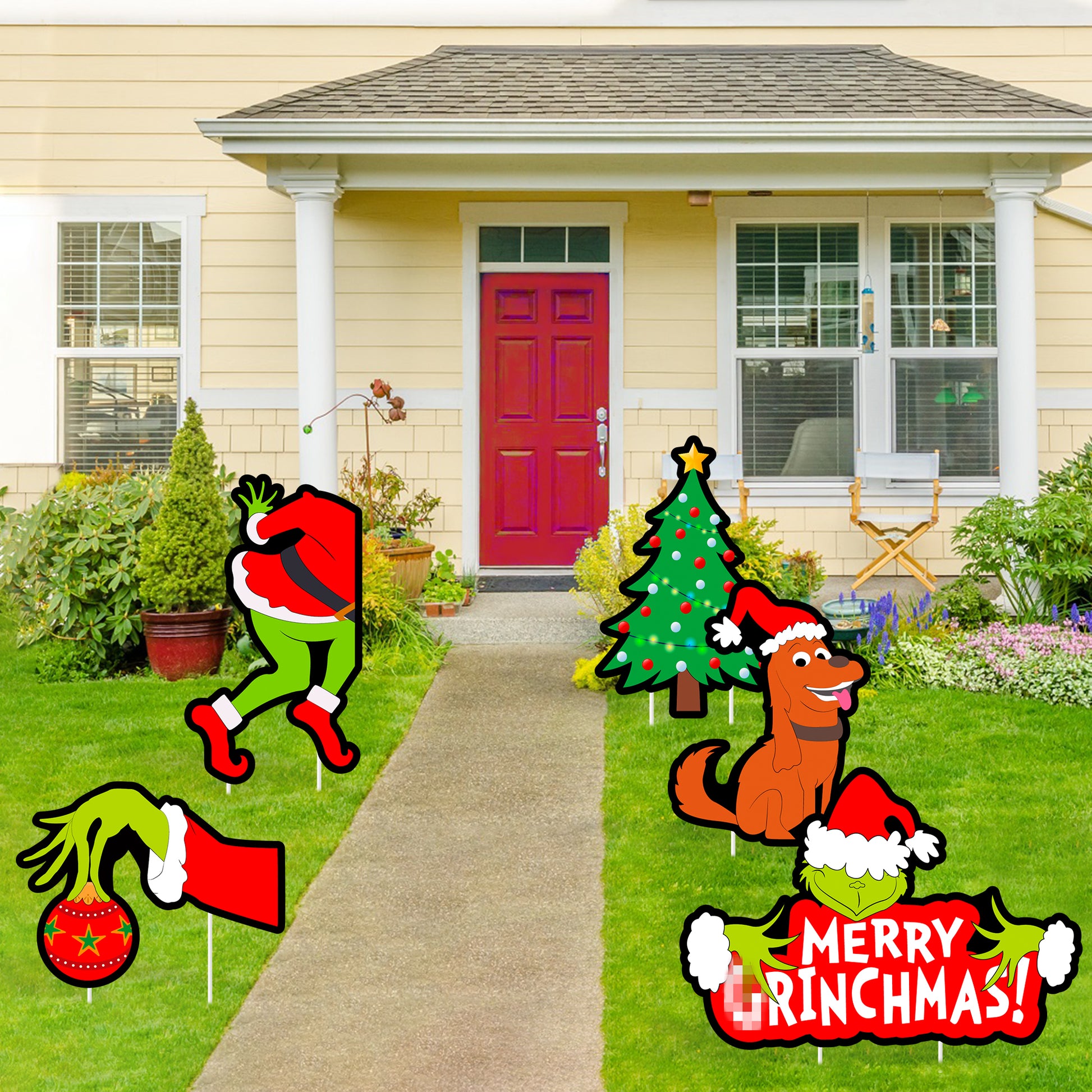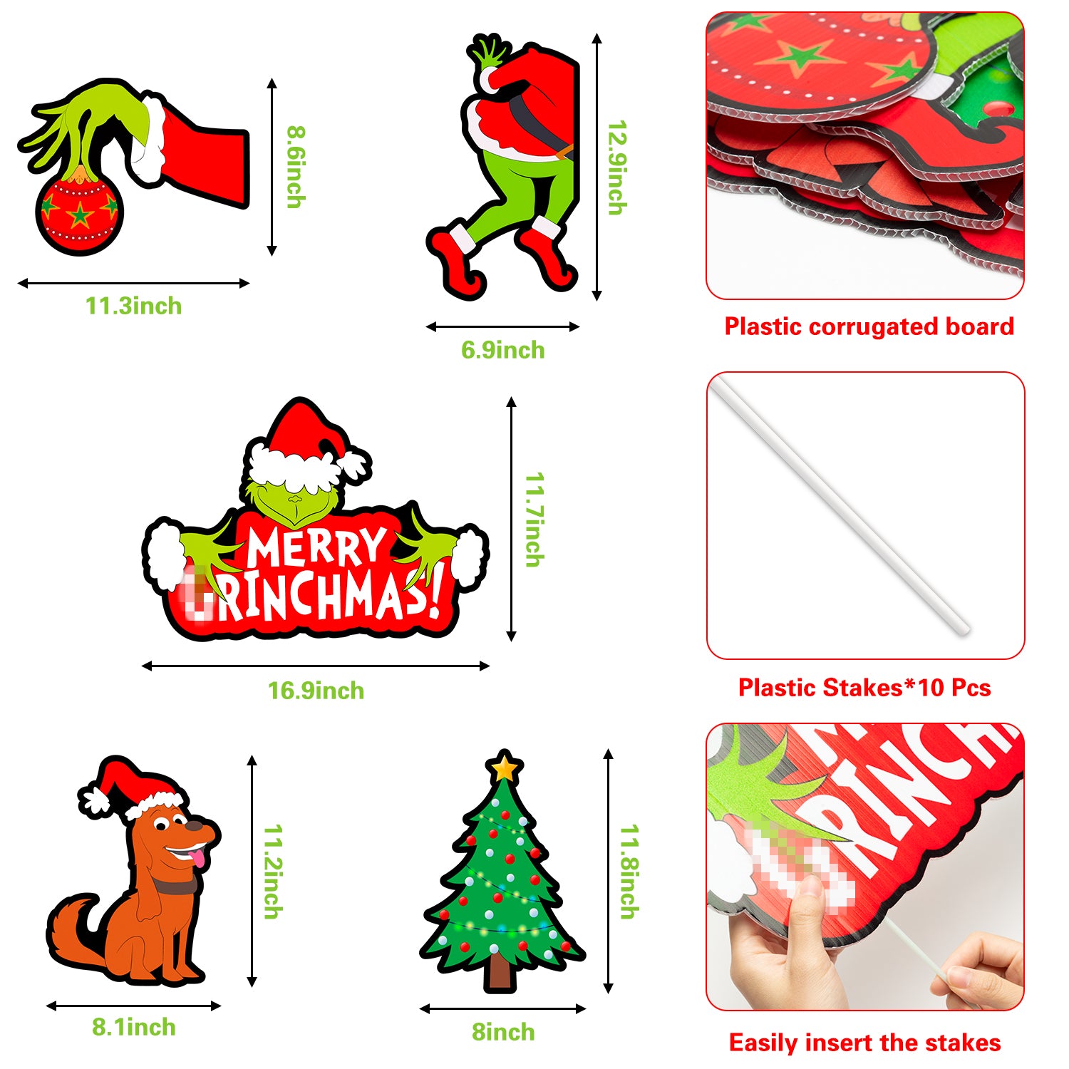 Merry Christmas Yard Sign: The package includes 1pc Christmas tree sign, 1pc dog sign, 1pc MERRY CHRISTMAS sign, 1pc green monster hand sign, and 1pc green monster body sign to add atmosphere to your Christmas!