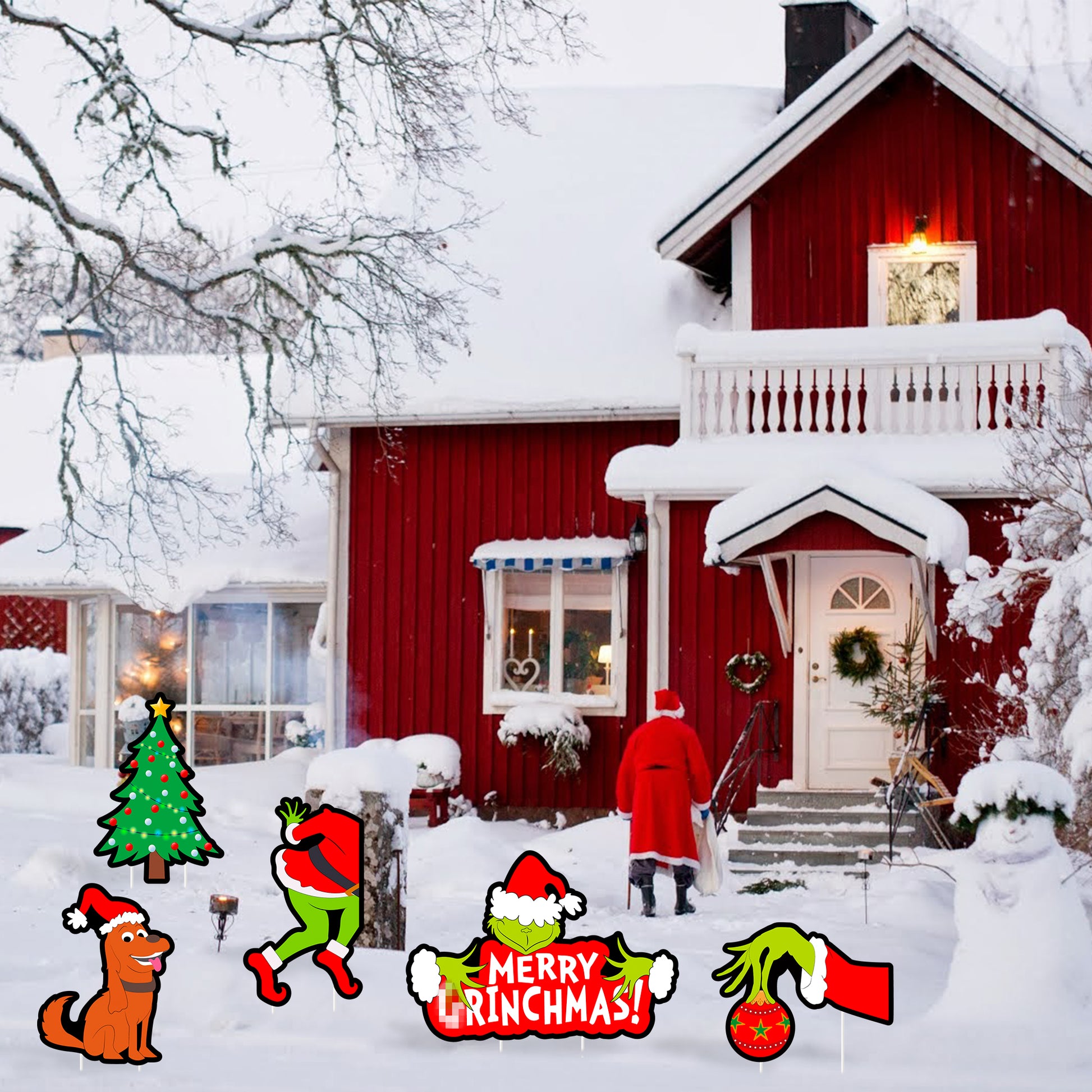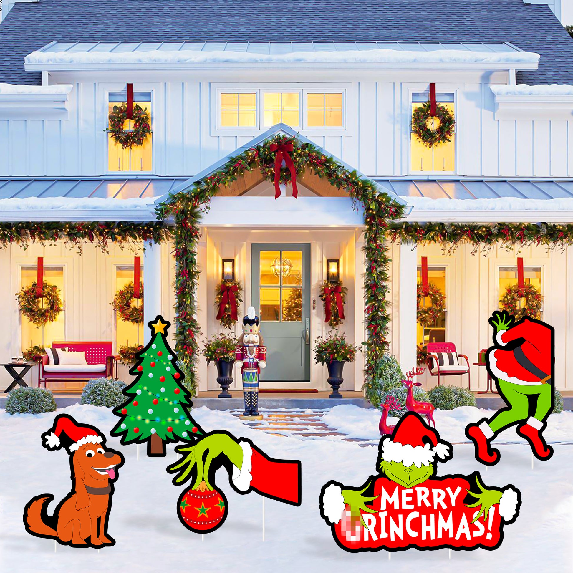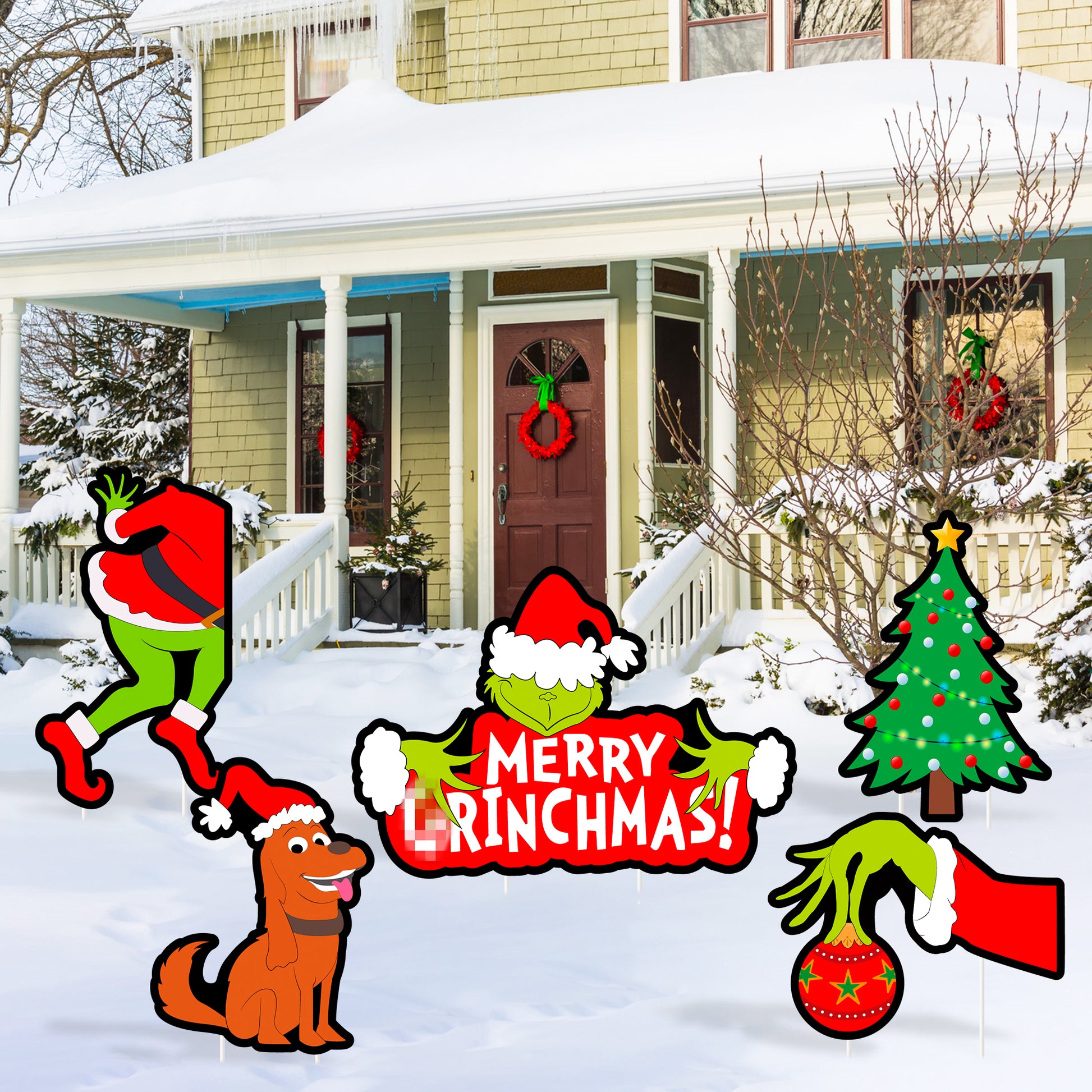 Merry Christmas Yard Sign: The package includes 1pc Christmas tree sign, 1pc dog sign, 1pc MERRY CHRISTMAS sign, 1pc green monster hand sign, and 1pc green monster body sign to add atmosphere to your Christmas!